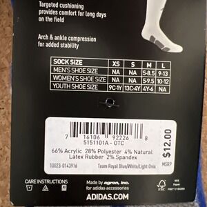 The product is a pair of Adidas over the calf baseball socks for unisex kids. These socks are designed specifically for baseball players to provide extra support and coverage during games. Made by the reputable brand Adidas, these socks offer a comfortable fit and are perfect for keeping young athletes' feet protected and dry while playing baseball.