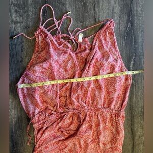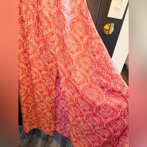 Pre-owned. Elan Rochelle Elegant High Slit Coral Paisley Maxi Dress