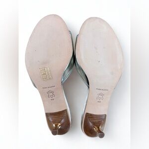 NWOT Tory Burch Silver & Gold Metallic Bow Kitten Heel Mules Size 8M w/ Dust Bag