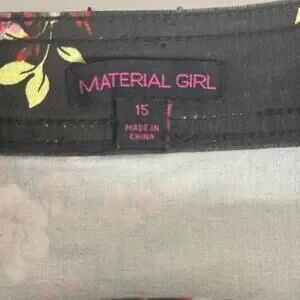Material Girl Y2K black floral denim mini skirt with button front and pockets. Size: 14/15