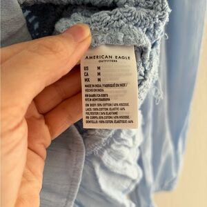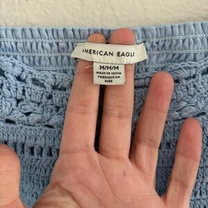 American Eagle Blue Crochet Lace Peplum Top Size M Square Neck