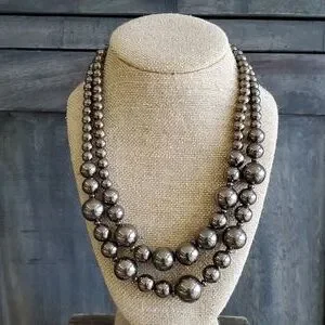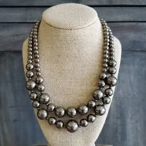 SILVER BEADED 17 INCH NECKLACE 2 STRINGS WITH EXTRA INCH DROP
