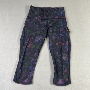 Lululemon Train Times Crop Pants Womens 6 Black Frozen Flourish Leggings 17"