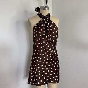 Show Me your mumu Jasmine dress chocolate halter with Ivory dots NWOT size S