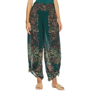 Free People Sweet Arrival wide leg boho teal multi-color pants that feature an elasticized backside waistband. Gently worn a few times good condition. No rips holes or stains.