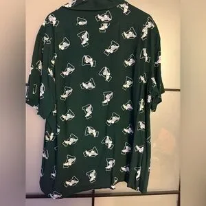 Stylish dark green shirt with unique graphic design. Perfect for casual outings.