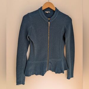 Halogen Nordstrom Women’s Petrol Peplum 100% Merino Wool Zip Up Jacket Sz XS EUC