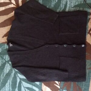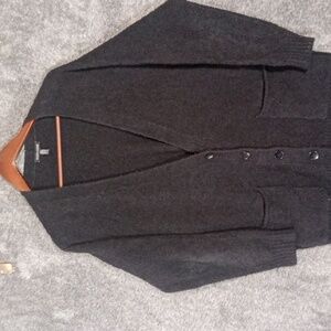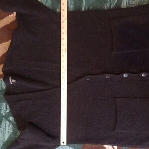 Elegant charcoal knit sweater. Ideal for cozy layering. it does need washed I didn't want to get it matted by washing it. it has been steam though...measurements are in the listing...it's shaggy look