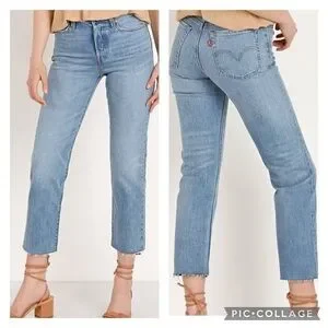 Levi's Wedgie Straight Leg Raw Hem Cropped Rough Tide Jeans Women’s size 26