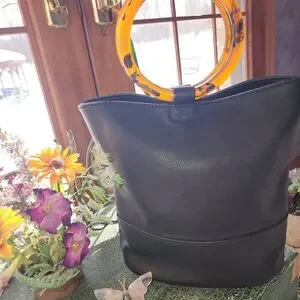 Elegant Black Tote Bag with Tortoiseshell Handle
