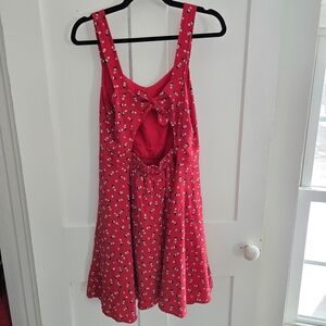 The Disney Lauren Conrad Dress in size 12 features a sweetheart neckline and a knee-length fit & flare style, perfect for a retro Minnie Mouse-themed party or holiday event. Made of rayon fabric with a polyester lining, the dress includes accents like a bow and an elastic back waist for comfort. The red color, sleeveless design, and floral pattern add a fun and feminine touch, making it suitable for summer, fall, and spring occasions. Hand wash only to preserve the quality of this adorable Disney-inspired dress. This dress is so cute. In great pre-owned condition with no flaws noted. Please see the pictures for reference. Thanks for looking!