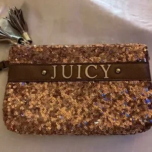 Dazzling bronze sequins with a bold Juicy logo. Ideal for adding sparkle to your ensemble. This wristlet has 2 zip closures so that you can carry more with just having a wristlet