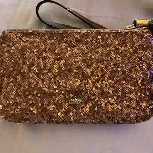 Juicy Couture Bronze Sequin Wristlet Double Zipper