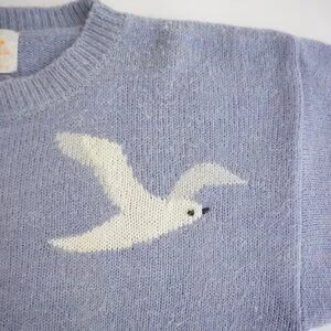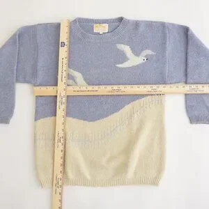 Vintage White Stag Blue Ivory Seagull Bird Scenic Crewneck Knit Sweater M
