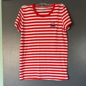 J. Crew Women’s Red and White Striped Collectors Tee with crab