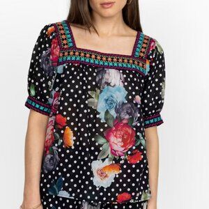 JOHNNY WAS Polkalona Square Neck Park Embroidered Blouse in Great Used Condition! (No holes/stains)