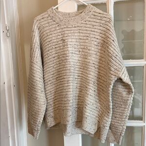 Cozy ribbed sweater. Crew neck design. Perfect for layering.