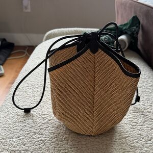 KHAITE Mini Lotus Woven Raffia Leather Top Handle Bag Purse