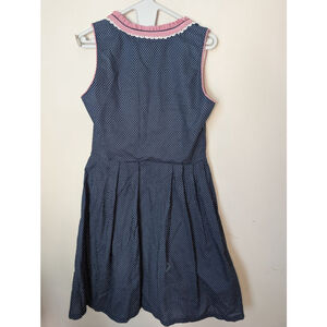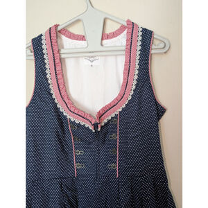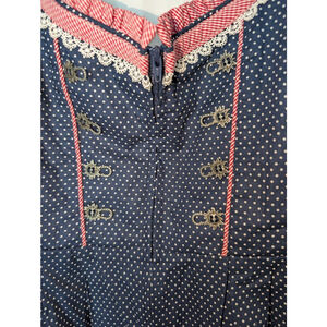 HIZITI Blue Polka Dot Dirndl Dress with Red Trim, Size M, Oktoberfest, Women's