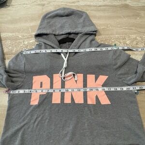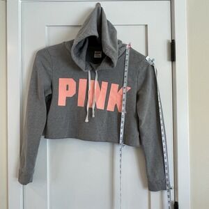 Victorias Secret PINK LOGO Crop Hoodie Fleece Pullover M Gray Soft Girl Barbie