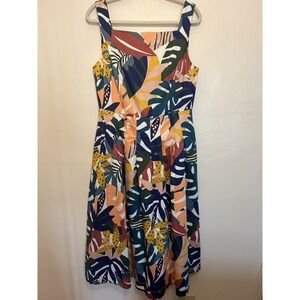 NWT Boden Aubrey Cotton Tropical Floral Midi Dress Women's size US 10R UK 14R