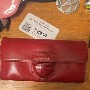Prada Vintage Koala Red Leather Long Wallet w/ COA