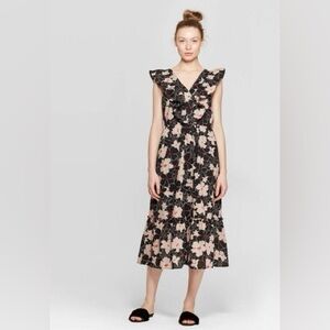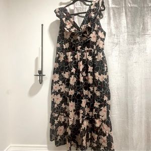 Who What Wear Dresses | Who What Wear/ Floral Ruffle Midi Dress | Color: Black | Size: 2X