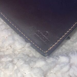 Stylish Gucci wallet with iconic pattern. Features a chic stripe accent. Ideal for everyday luxury.