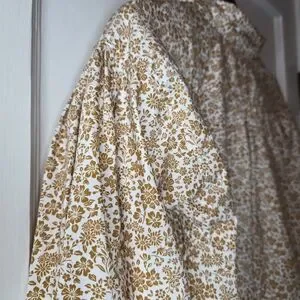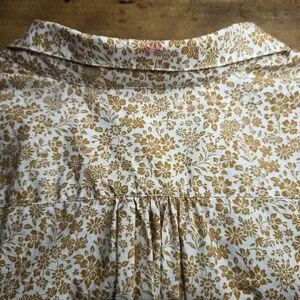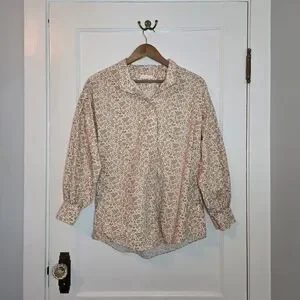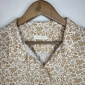 Ann Mashburn 100% Cotton Blouse – Size L - White / Caramel Floral Pattern