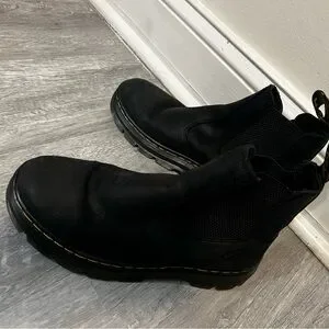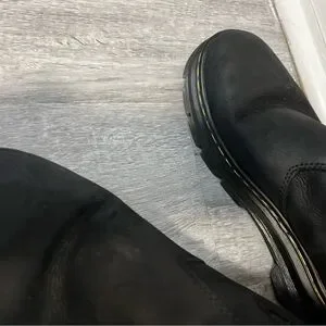 Classic black leather boots with signature yellow stitching. Durable and stylish for everyday wear.