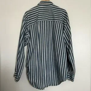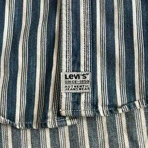 NWOT. Timeless vintage Levi’s button-down shirt featuring bold blue and white vertical stripes. Crafted from 100% soft cotton and made in Hong Kong — a rare find from Levi’s 90s Authentic Jeanswear collection.