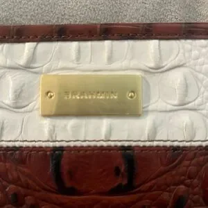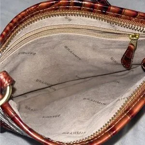 Elevate your style with this Brahmin shoulder bag. Featuring a stunning croc-embossed design in black, brown, and cream, this bag is perfect for any occasion. The luxurious texture and versatile colors make it a must-have accessory.
