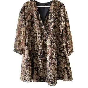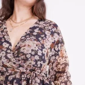 Madewell Floral Reverie Faux Wrap Mini Dress Lined Long Sleeve Women’s Large
