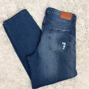 Lucky Brand Blue Boy Mid-Rise Relaxed Straight Leg Distressed Jeans Size 12/31