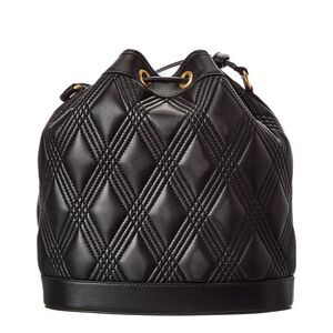 About the brand: Signature elegance with a modern aesthetic. Made in Italy VLogo Quilted Leather Bucket Bag in black quilted leather and gold-tone hardware with Vlogo accent Interior design details: leather interior, wall pocket Measures 9.5in wide x 10.5in high x 5in deep Adjustable shoulder strap drops 23in Drawstring closure Please note: All measurements were taken by hand and are approximate; slight variations may occur. Our products are 100% genuine. In some cases we purchase merchandise from trusted independent suppliers and not directly from the brand owner. In all cases we stand by the authenticity of every product sold on our site.