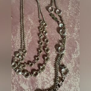 Matching necklace set. One long and short layered silver necklace with clear jewels from the 2000s #layering #jewelry #y2k