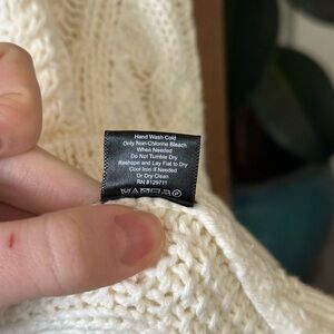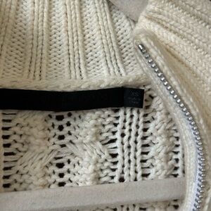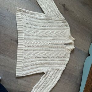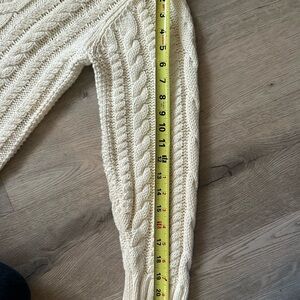Stay warm and stylish with this cozy cream cable knit sweater. Perfect for layering, this sweater offers both comfort and elegance.