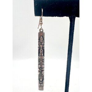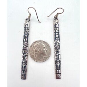 Vintage Sterling Silver Totem Pole Earrings Tongass Tlingit Alaskan 2.75"