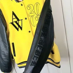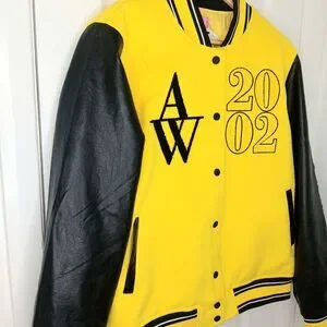 AZALEA WANG Women’s Yellow Black Varsity Bomber Jacket Large Retro Bold NWT