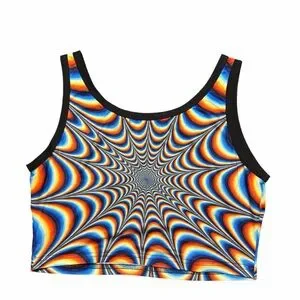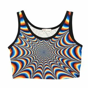 Eye-catching crop top with a dynamic swirl pattern. Features bold colors for a standout look. Ideal for festivals and parties.