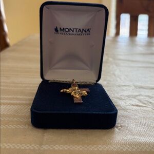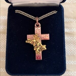 This is a beautiful cross with some rose gold finish and a gold bull rider on a silver chain. It comes brand new in the original Montana Silver Smiths box with cleaning instructions. Please feel free to ask any questions 😊 Thank you for looking at my closet and Happy Poshing 😊