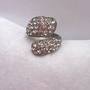 Stunning vintage wrap-style statement ring featuring dazzling clear rhinestones set in a silver-tone band ✨