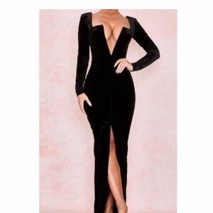 House of CB Charlotte black velvet deep plunge maxi dress small evening sexy