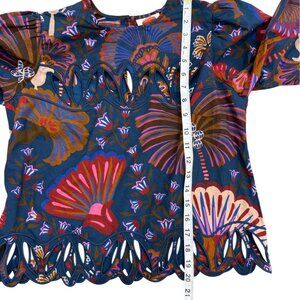 Farm Rio Anthropologie Cutwork Blouse Scalloped-Hem Balloon-Sleeve Top Women XXS