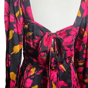 Saylor Fritz Floral Print Long Sleeve Babydoll Dress Sz M Black Multi Floral