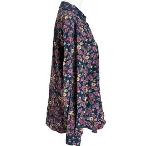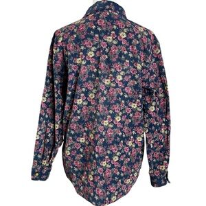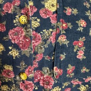 Vintage 90s Micro Corduroy Floral Cottage Shabby Chic Button Down Shirt Medium