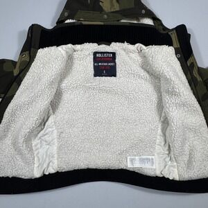 Hollister Jacket Camo Green Sherpa Lined Hooded Bomber Cropped Woman's Small