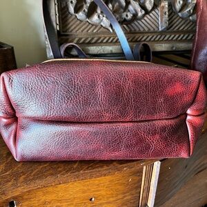 Stylish leather tote with a rich reddish brown hue. Features sturdy handles and a front pocket. Perfect for daily use. Color not available on the website!