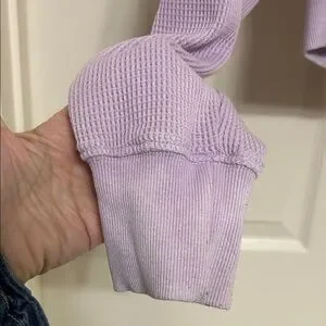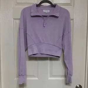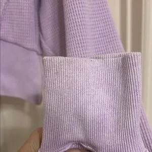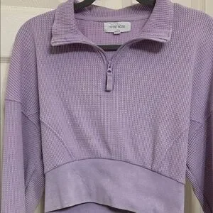 Pretty light purple crop top by Hippie Rose with quarter-zip. Waffle knit texture and also dolman sleeves for more generous room in the chest area. Perfect for casual occasions, lounging or fitness or anything in between. Such a cute top!