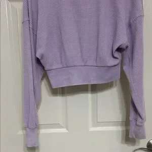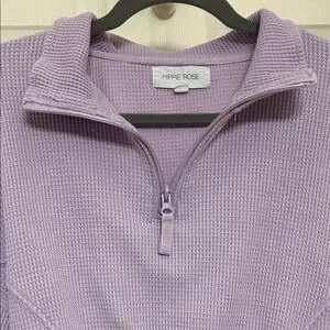 Hippie Rose Lavender Waffle Knit Quarter-Zip Crop Top with Long Sleeves M ptp 21
